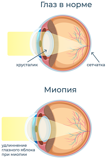 Близорукость — это заболевание связано с патологическим удлинением глазного яблока.