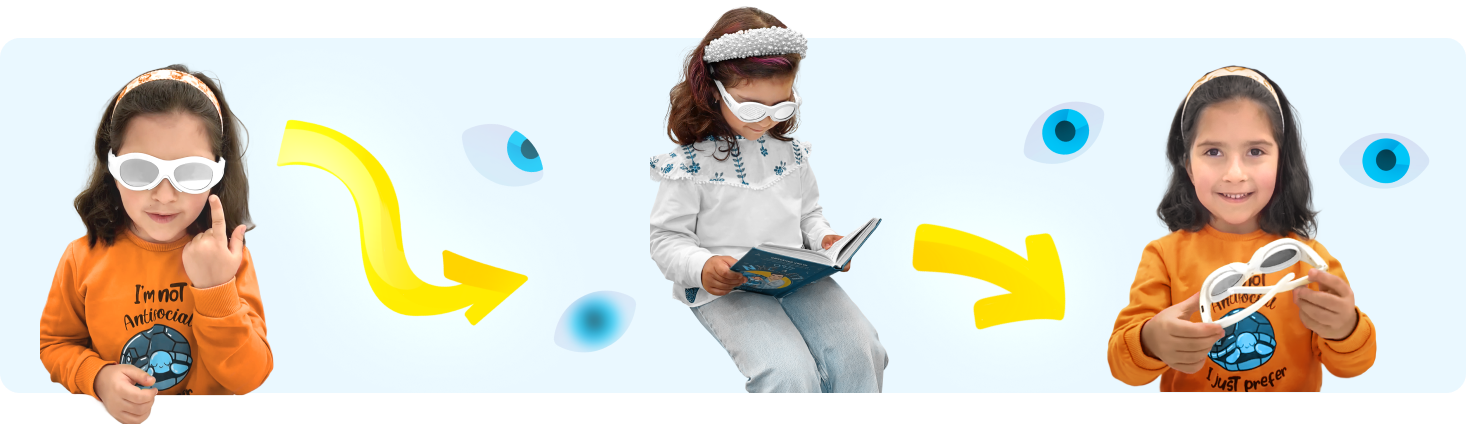 С учётом индивидуальных параметров, которые зависят от зрительной системы каждого пациента, очки STRABO прогарммируются на режим мигания (окклюзии) с различными интервалами времени.